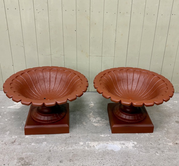 A fun pair of petal rim urns, large size 24" diameter x 29" tall. Dont like the colour? have them painted in the colour of your choice.